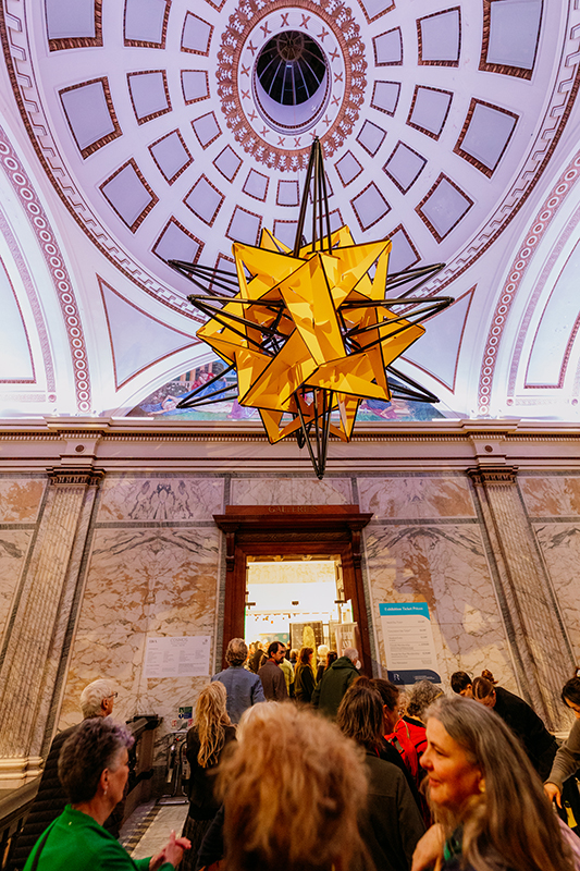 I enjoyed a site visit to Brompton Cemetery Chapel on a bright frosty morning with curator Catherine Li to plan a future exhibition at this magnificent Grade II listed building. Entering the glass domed chapel is entering a space both hushed and echoing. Concentric circles in varying shades of bath stone span the floor circled by eight giant Corinthian columns. Built in 1842 the eight-sided building is said to represent life on earth, while its lofty dome suggests heaven. Early ideas for the exhibition are thinking about ‘way finding’ in terms of physical and spiritual navigation to find a path or direction.
