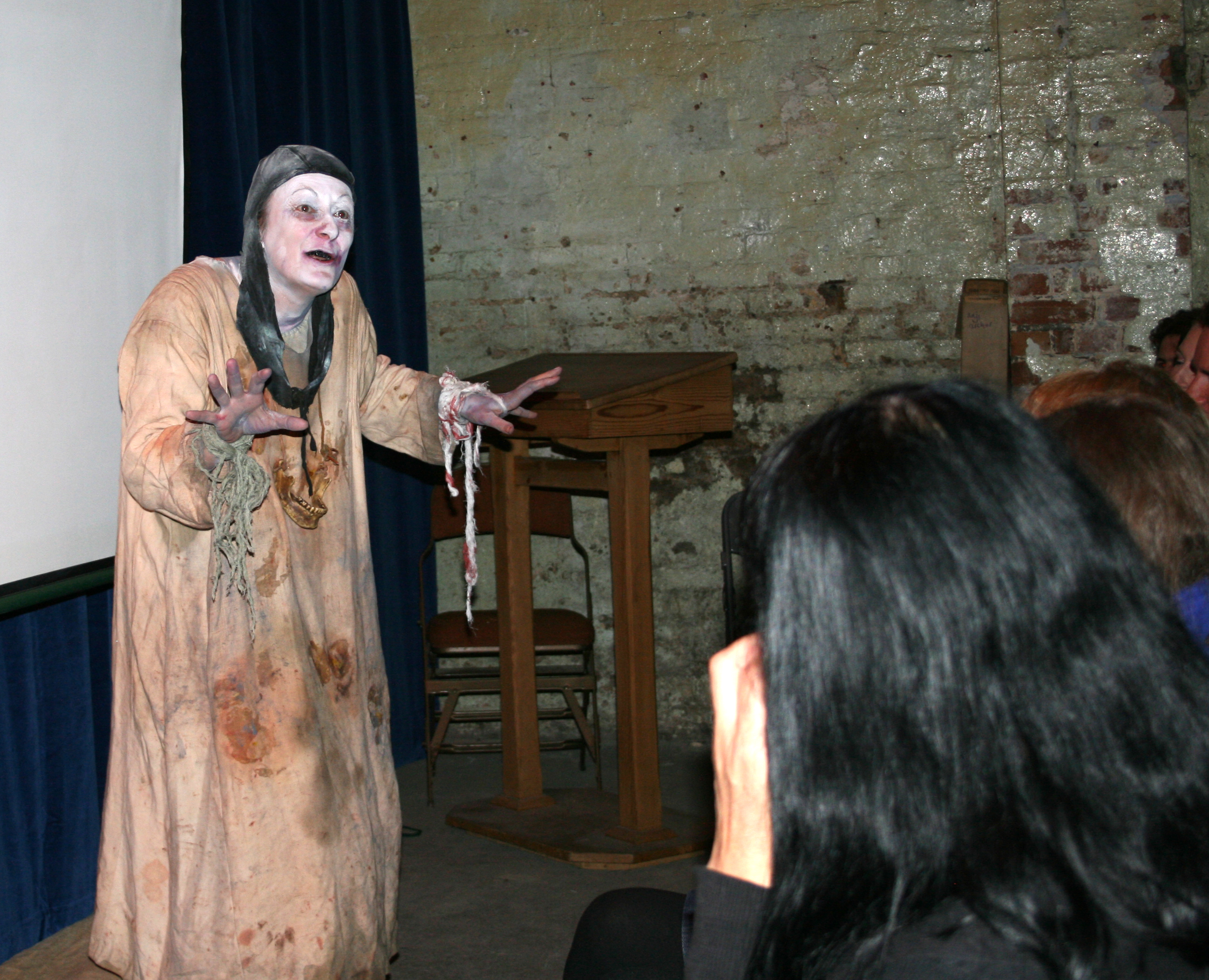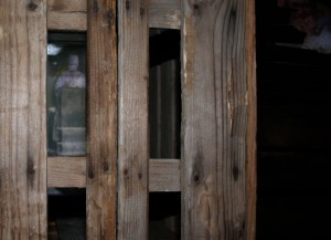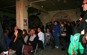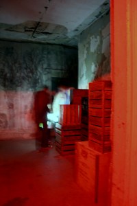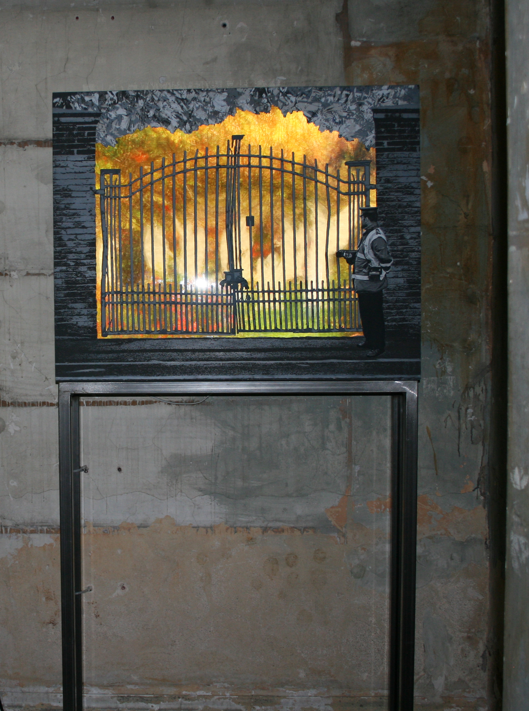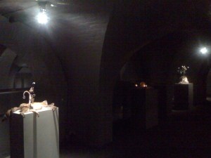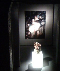 The works were spot-lit in the darkness causing severe shadows to block the work on approach and bleaching detail from afar. Viewing became a dance.