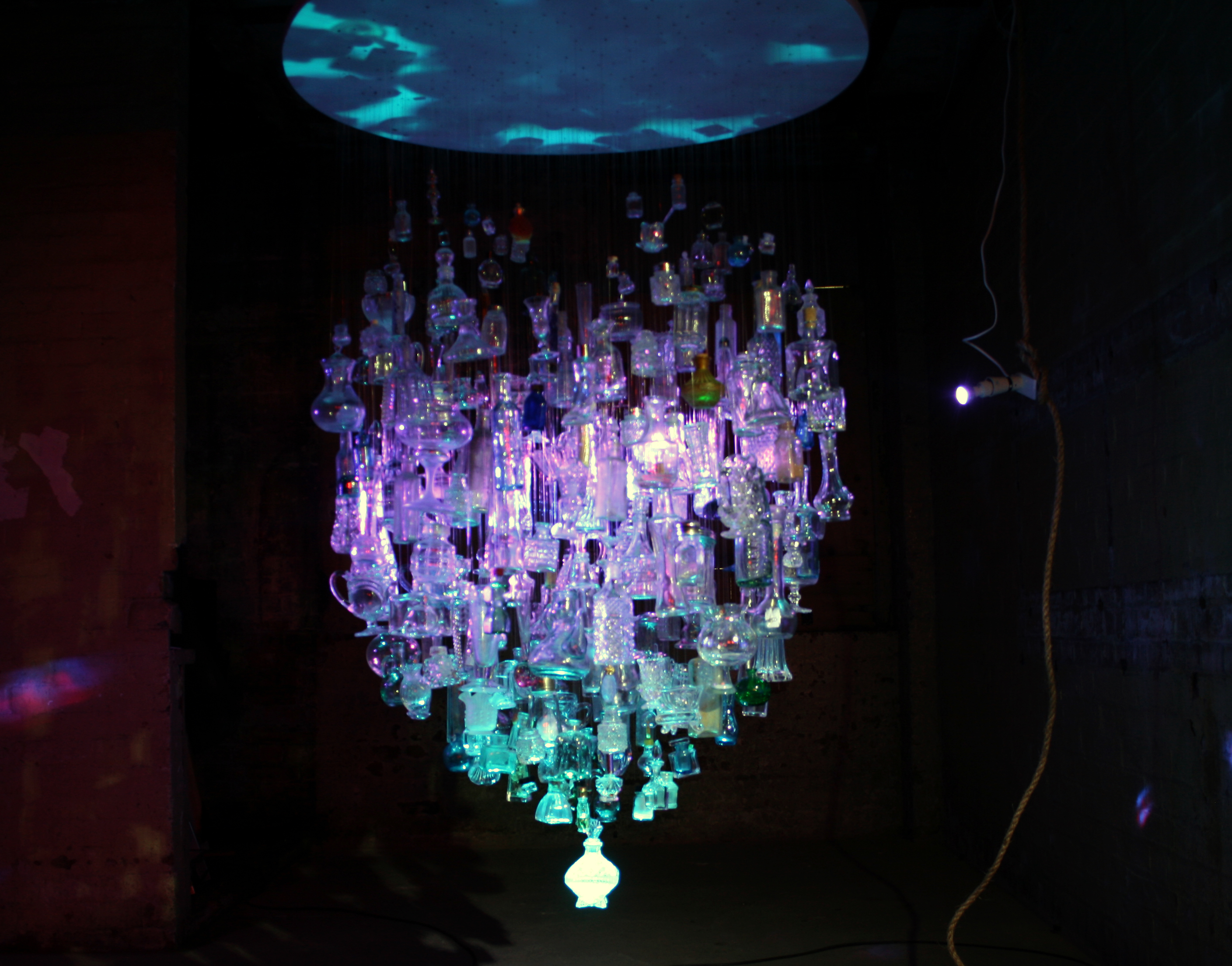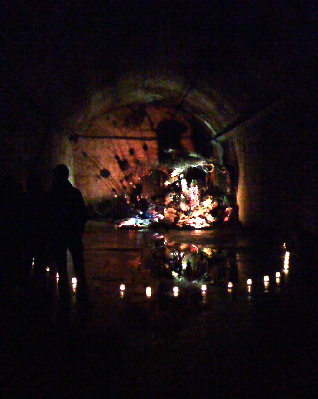 We were offered face masks on entering the space as there was a possibility of poisonous spores emanating from the fungal growths, this along with the cordon of flames and the lake like puddle preventing approach made us feel like explorers braving hostile lands to visit some glittering shrine.