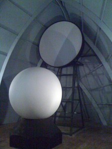 Lindsay Seers work is all narrative but is not a linear story. The past present and future entwine with the thoughts of multiple characters. Everything is connected but like in a dream those connections are just beyond grasp as they shift and change and merge. I wasn’t sure if I fell asleep or not, my eyes seemed to be open but I had those moments of falling from consciousness being tucked up in a warm blanket can induce. The haunting sea shanty played in the headphones ‘ the sea will take her slender body..’ over and over, a narrative from one side in Seers soft tone then someone speaks abruptly from behind, another voice is heard at a a distance, some music starts up and all the while the dual projections onto giant convex and concave spheres in the disorienting location of an upside down ships hull sweeps through history into a CGI future and back to the present. We were given a free book on exit, it is another layer to the whole experience and I have no idea what is true and what is fiction, this means the fantastical can appear to be reality and I like that. There are many things to wonder about in Lindsay Seers work.