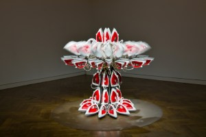 But Joana Vasconcelas did not disappoint. Her steam iron water lily ‘Full Steam Ahead’ was a wonder of engineering – hissing puffs of steam into the room it was the deadliest of flowers and the pendulous sculptures snaking throughout the gallery were magnificent explosions of embellishment.