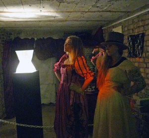 A less subtle use of light and glitter to create spectacle was employed in ‘The Majesty’, a horticultural installation by artists Tony Heywood and Alison Condie for Cityscapes. Billed as a reconfiguration of the show garden ‘Glamourlands’ from the RHS Chelsea Flower Show, which evolved from a picturesque landscape portrait of the Dorset coast above ground, into a subterranean fungal landscape of the sublime below ground. ‘Glamourlands’ featured a landscape of excess created from gold carbon and jewel encrusted forms. Directly after the Chelsea Flower Show it travelled to The Old Vic Tunnels where it became ‘The Majesty’ – a new landscape with additional sculptural elements within a spectacular underground setting.