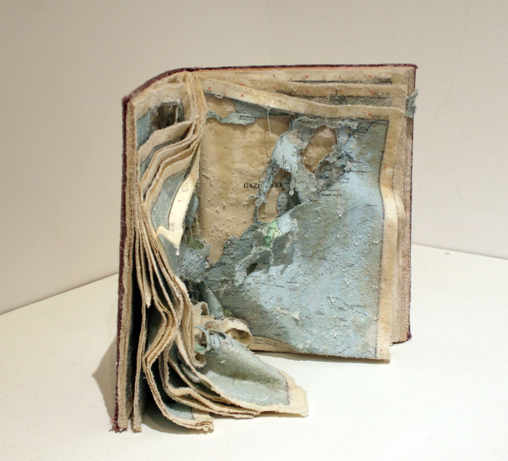 The land has all been cut from this atlas encrusted with salt crystals leaving only the oceans