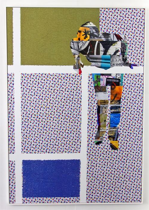 The figures have a lightness about them which comes from the photographic origin and staging of his models who are captured climbing, suspended, or mid jump. Much of his work is installed in site specific locations and so he uses locally photographed images randomly collaged to inhabit the silhouettes.