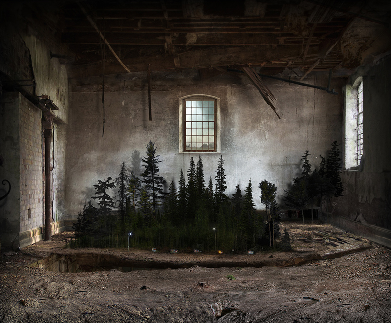 The eerie atmosphere of abandoned space is echoed in Suzanne Moxhay’s constructed images