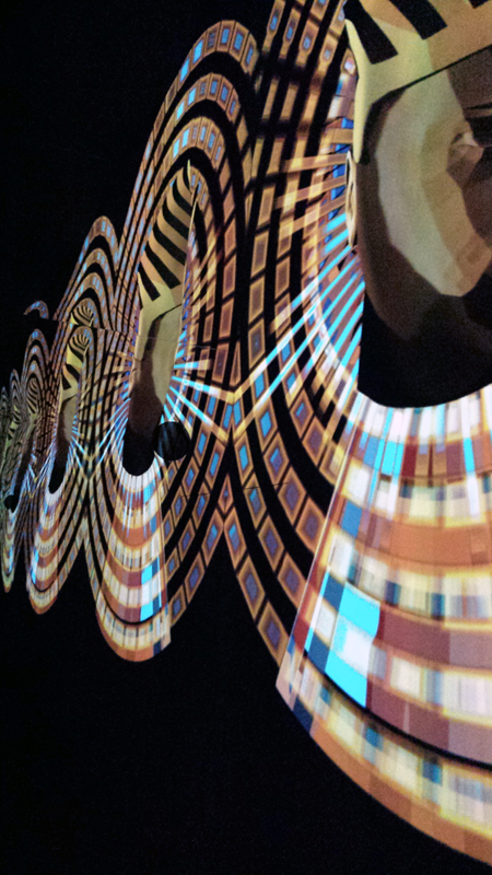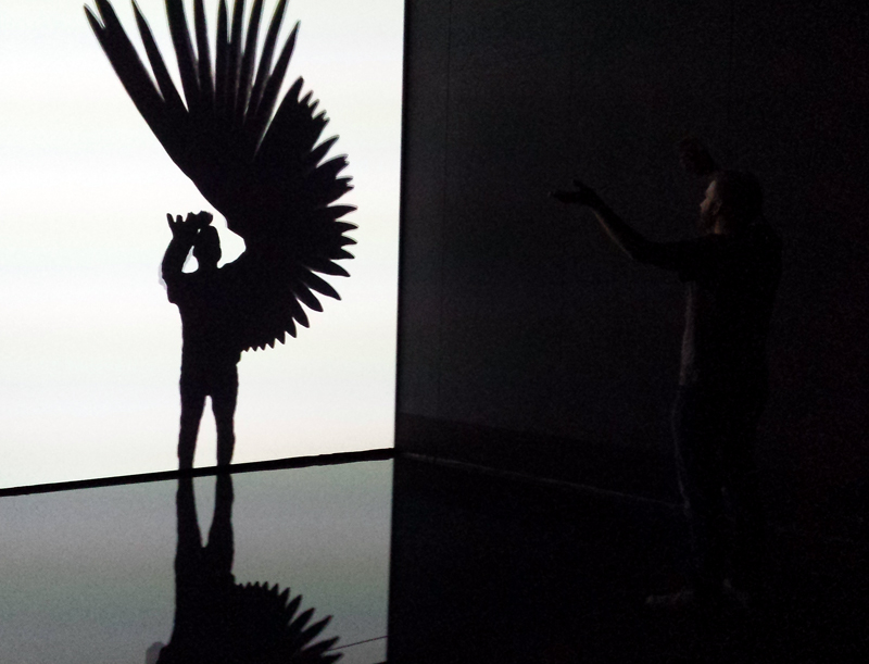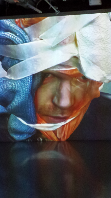 The new media animation by Charles Richardson was intriguing. It was not a hologram. The figure turned and writhed out of the screen in 3D but no glasses were involved – it was like a ghost had entered the room – it was uncanny
