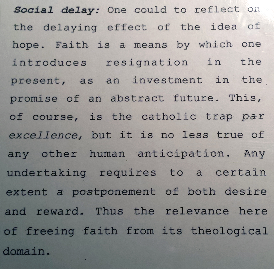 Faith and hope – the fulfilment of desire must never happen – it must always be in the future