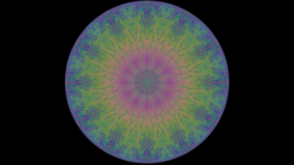 Enjoying the many patterns playing with kaleidoscope effects using video footage of soap film membranes. In the 7th dimension space acts in a similar way to a bubble membrane trying to minimise surface area.