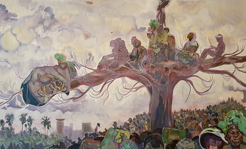 Michael Armitage – Paradise Edict at the Royal Academy. Digital images do not do justice to the glow and vibrancy of these paintings. Can feel the heat pulsating with unsettling shape-shifting undercurrents.