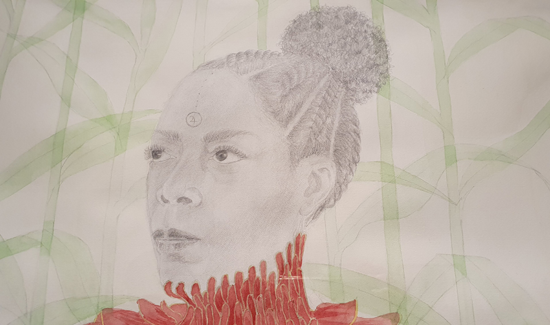 Researching the medicinal and psychical capabilities of plants, Watkiss has personified a matrilineal pantheon of plant warriors safeguarding and facilitating cross-generational knowledge and empowerment.