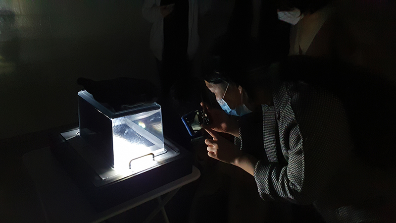 The cloud chamber workshop gave students a chance to experience the otherworld of subatomic particles. Dark matter might be inaccessible to us but cosmic particles offer a more tangible contact – although too small to see we can witness their effects through quite simple processes. In the chamber we see trails from naturally occurring background radiation as well as particles from outer space.