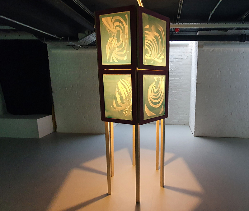 Working on Breath of Stars – making a data base of video clips which will be accessed and play for 12 seconds every time a cosmic ray event is recorded by the detectors. The star bursts are made from cloud chamber footage. The size of the star burst will relate to the amplitude of the cosmic ray that hits the scintillator plastic. More energy = bigger starburst.