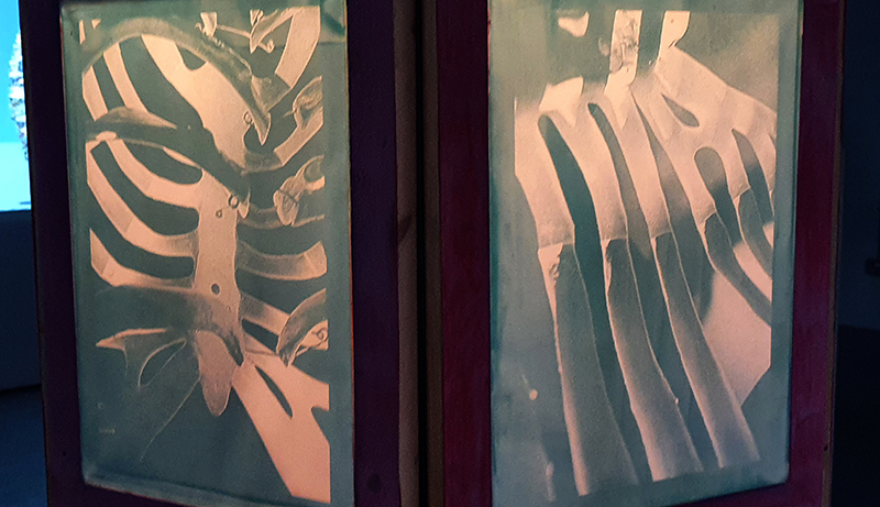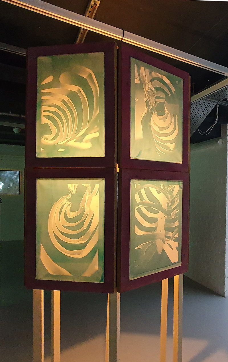 The London Group exhibition including work from Victoria Arney (birdsong translated into woodcuts), Carol Wyss (examining the ribcage as protective enfolding), Sandra Crisp (blender generated molecules with embedded culture – a culture with culture) and Beverley Duckworth (Dust from the Sahara) in Catch Your Breath at Morley Gallery.