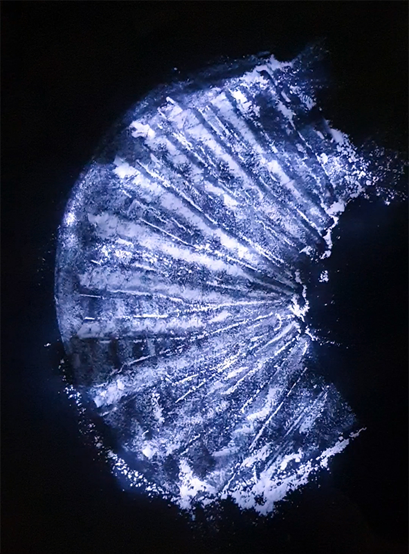 Cloud Point gathers artists who don’t consider objects, products or masses in their work, but rather the atomic structure of our surroundings, and theirs. They are particularly interested in the in-betweens — processes of liquefaction, moments of coagulation, condensation points… The emergence of this molecular gaze in contemporary art also reflects in theory and politics.