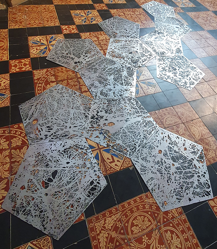 Thrilled with the location of my work in the Lady Chapel, interacting with the patterns and geometry of the Minton tiled floor.