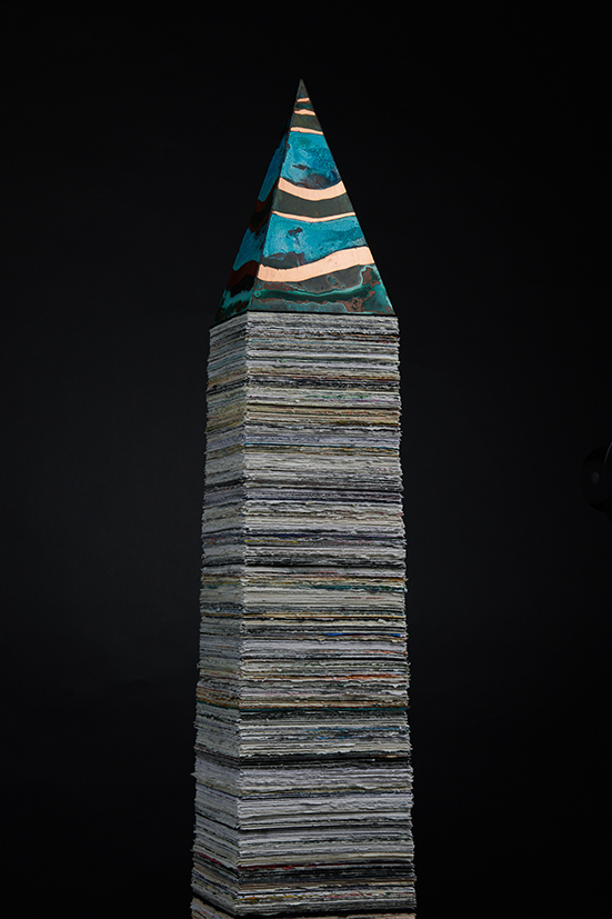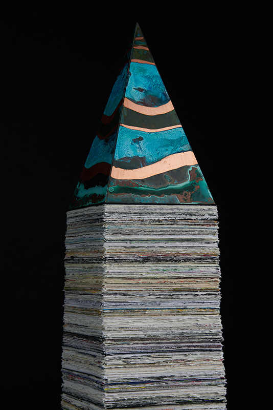Susan Eyre, Azimuth Obelisk (of sedimentary knowledge), paper, concrete, patinated copper, 2023 (detail) Photo Warren King Photography