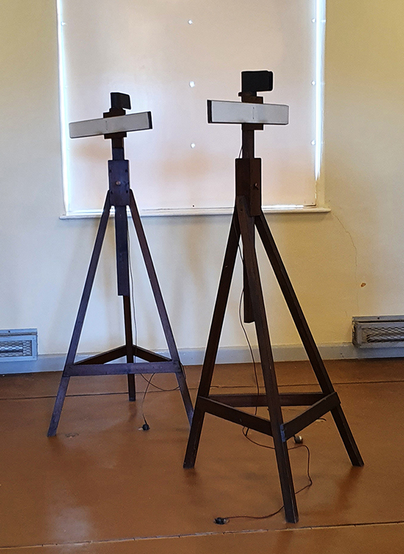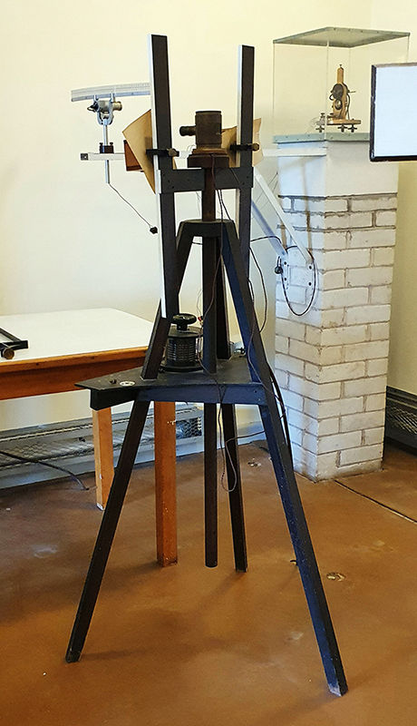 The tablets will be shown on adapted wooden theodolite or telescope tripods in the spirit of equipment seen below during my research trip to Hartland Magnetic Observatory.
