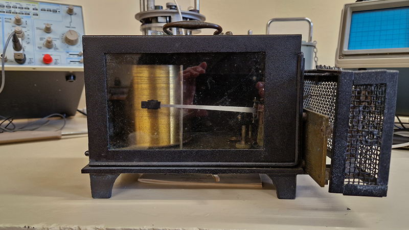 In the vault, seismograph readings are made of vibrations in the bedrock. Seismic activity around the UK is fairly low level but sensitive structures can still be effected. These instruments pinpointed the magnitude 4.7 Longtown earthquake on Boxing Day 1979, and a swarm of tremors in the Dumfries area in 2001. The network also detected the air crash at Lockerbie in 1988, accurately recording the time of impact for crash investigators.
