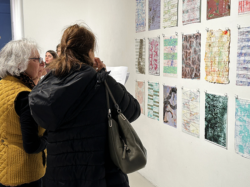 Anne Krinsky has been working on a research-based project about vulnerable wetlands and climate change since 2018. Coastal wetlands worldwide are at risk from rising sea levels caused by climate change, while inland watersheds are threatened by heat, drought and agricultural runoff. These ecosystems are critical to the plants and animals that inhabit them and to human survival. She is drawn to biodiverse habitat edges – where water meets land or where fresh water meets the sea and is interested in recording both the beauty of – and human impacts on – fragile habitats. She uses documentation as an archive of raw materials to generate work in other media, including site-responsive print and video installation and tactile work on paper. In responding creatively to wetlands and watersheds, she wants to raise public awareness of climate threats to these life-sustaining habitats. Before They Vanish, 2024, 24 small works: paper, mylar, acrylic, digital print, mixed media, 150 x 300 cm.