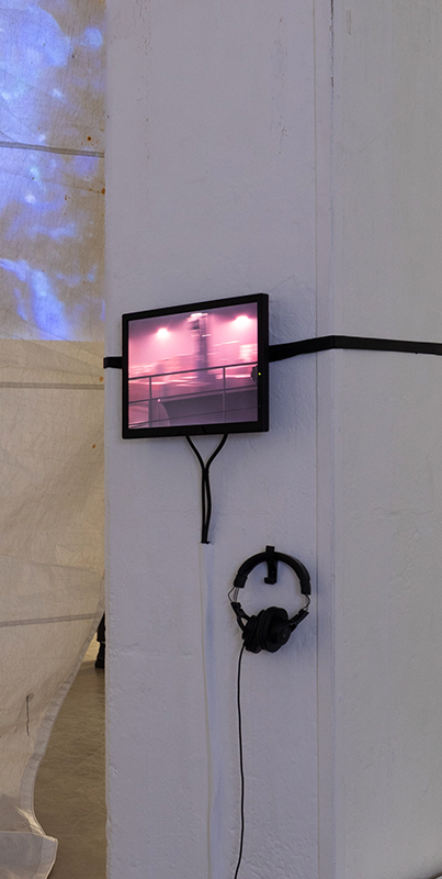 A History Of The Receding Horizon (2015, HD Video, 16:9, sound, projection, 28 min) is a digital film installation by Kathleen Herbert, exploring different concepts of time within the landscape. Based upon Kielder in Northumberland, the narrator whose script was developed from the artists research interviews with environmental historians, astronomers at Kielder Observatory and local people from the area, leads the viewer through the film weaving together past, present and future timelines. The Chaplin (2006, standard HD video, 4:3, sound, monitor, 07: 20 min) is a film installation recalling a conversation held between the artist, Kathleen Herbert, and the Port Chaplin based at the Mission to Seafarers centre in Avonmouth docks. The Port Chaplin boards every ship as it enters the docks, his role is to provide emotional and practical support to seafarers while they are in port. The piece was produced while Kathleen was based at the centre researching for a new commission by Picture This Moving Image and Situations Bristol. Her research at the centre culminated in a 3 day voyage aboard a cargo ship in which she took her camera and the extracts of film from this journey provide the visual background of the film.