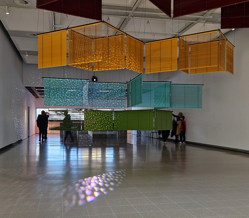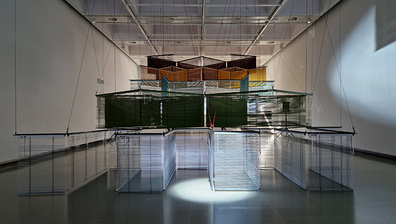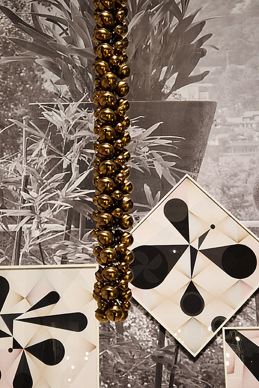 Haegue Yang Leap Year at Hayward Gallery. With colourful works festooned by garlands of bells and strewn with fairy lights this was a perfect show for the festive period. Folklore, surrealism and ritual, collage and costumes combine with the modern domestic/utilitarian in hybrid works that have a playful carnival air.