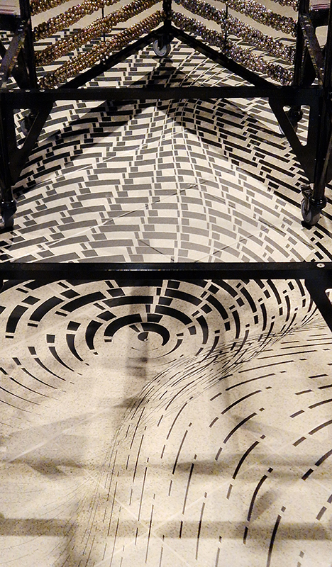 I am making use of public access to historical magnetograms recording of Earth’s magnetic declination to feed into new work inspired by palaeomagnetism. Magnetic studies of the ocean in the 1950’s had determined that the ocean floor was covered by bands of magnetic stripes that varied between normal polarity and reversed polarity. The Earth’s magnetic field has reversed polarity many times over the past hundreds of millions of years. These magnetic stripes were found to be symmetrical on the ocean floor about the mid-oceanic ridge. In 1963 British scientists, Fred Vine and D. H. Matthews proposed that the magnetic striping was caused by paleomagnetism, the storing of Earth’s ancient magnetic field in the sedimentary rocks that were forming as lava spewed up and spread across the ocean floor setting the history of pole reversals in stone.