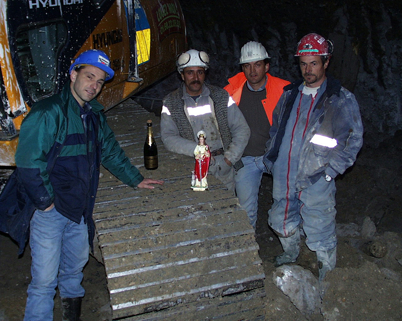 Saint Barbara, was adopted by miners and underground workers as patron saint after the pursuit of geology and the widespread use of gunpowder in mining escalated in the 1600’s. She may have a dubious authenticity but her benedictions are still sought today with many statues installed at the entrances to Crossrail and a large ceremony on her saints day, 4th December, performed by local priests before tunnelling went ahead. Even at CERN the epicentre of scientific rigour, a shrine to Saint Barbara was established at every shaft site of the Large Hadron Collider requiring excavation and a blessing performed even if the priest had to be lowered by crane down the shaft to achieve this.