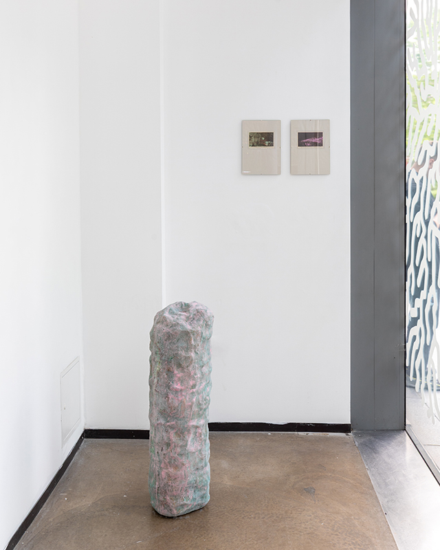 Charlie Franklin’s work considers control, physical experience and memory within the natural landscape. Her research includes how formations such as standing stones, grottos and geological debris remain or change across time. With a particular interest in materials and the properties they hold, she is experimental in her approach to making. Everyday items including cardboard, plastic sheeting and gaffer tape are repurposed to build the foundations of her sculptural work. Franklin also collects found imagery such as postcards and photographs, which she reworks to become something else.