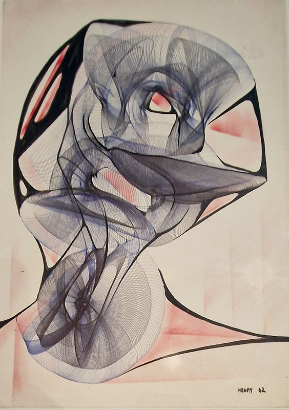 Desmond Paul Henry used a repurposed bombsight computer, designed to drop bombs more accurately, as developed at Orford Ness, to make a drawing machine which he then hand embellished.