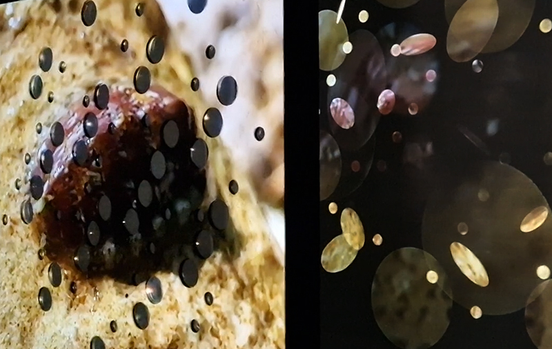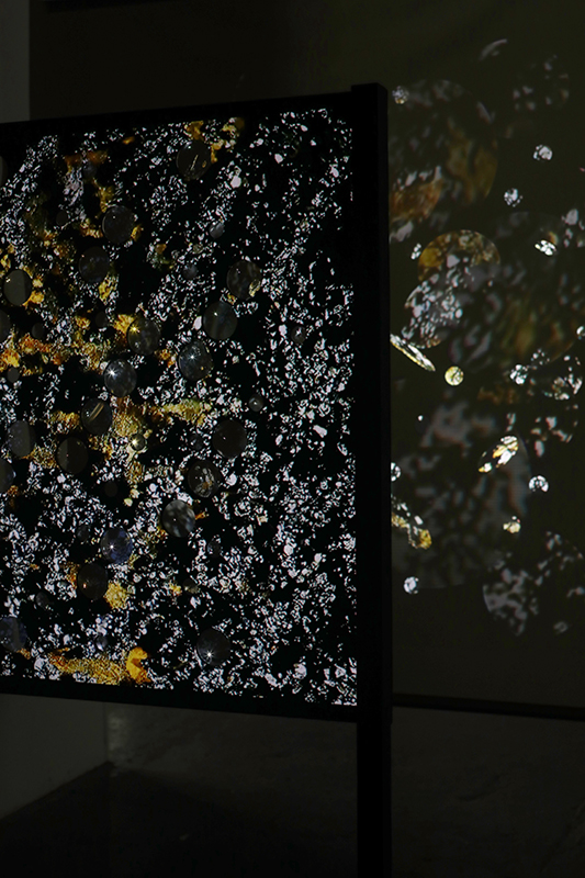 My video installation Lithos Panoptes imagines a view of the world from the perspective of the rock via the molecular structure of magnetite. Referencing a many-eyed giant of Greek mythology, Argos Panoptes (always eyes still awake), the work considers the perpetual vigilance of rock as record keeper and witness.