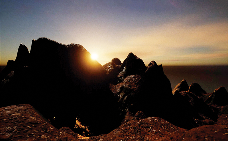Deborah Tchoudjinoff’s moving image installation work The City of Gold (with sound in collaboration with Joe Farley) considers vast, beyond human, geological timescales when continents have once again become as one. Starting as a short fiction text, Deborah began to form an imagined world of cities in a future Amasia. The fictional cities are named after minerals that are heavily sought – rare earths, copper, uranium, gold, and coal – hinting at a narrative of an Earth depleted of the resources we rely on. The City of Gold is one of the five imagined cities. In a world where these natural resources are no longer, she questions what it would look like and who would be the inhabitants.
