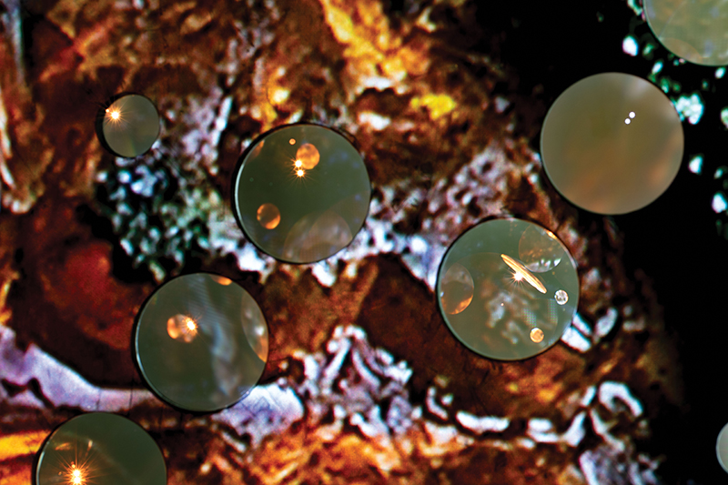 Referencing a many-eyed giant of Greek mythology, Argos Panoptes (always eyes still awake), the work considers the perpetual vigilance of rock as record keeper and witness. Video of human activity projected through distorting optical lenses transforms the anthropocentric position to imagine the perspective of the rock.