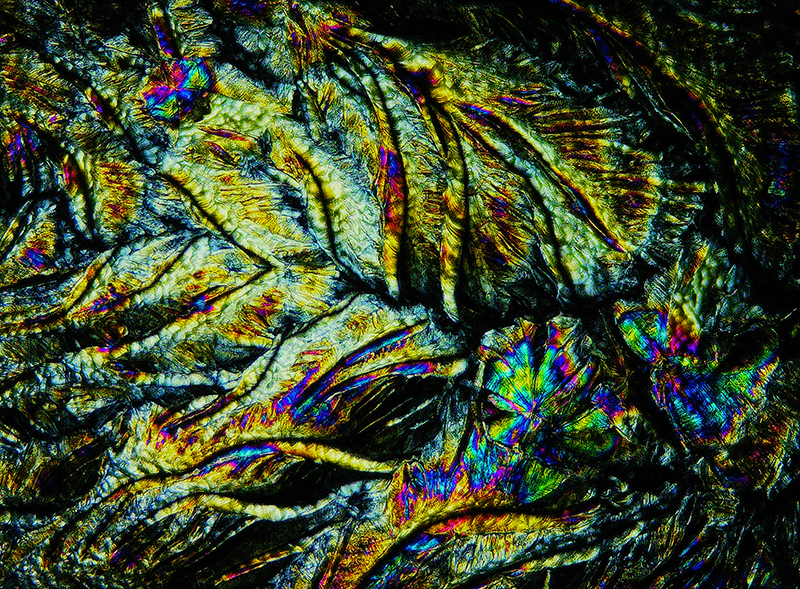 I had tried some ‘Vitamin C’ crystal growing microscopy experiments at home. These images use a polarising filter under the microscope to reveal the vibrant colours. Next step will be to set up a timelapse of the crystals growing.
