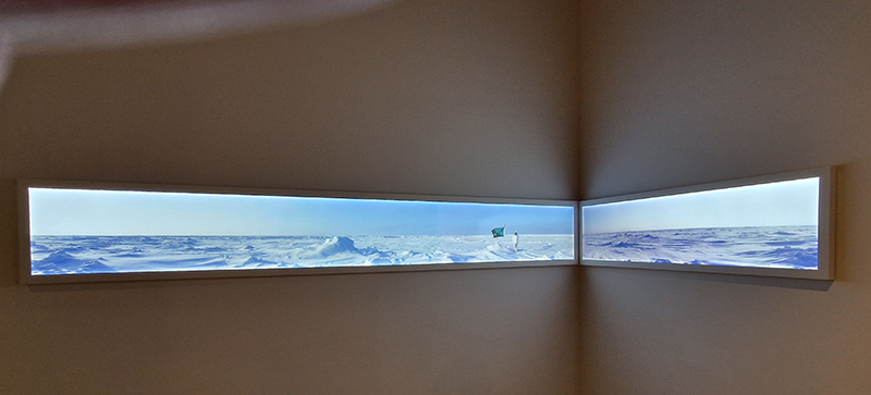 In Litho/Domous, Rona Lee layers photographic plates from mass produced ‘coffee table’ books onto lighting panels, utilising the ‘bleed’ between them that this reveals, to evoke the tectonic instabilities of