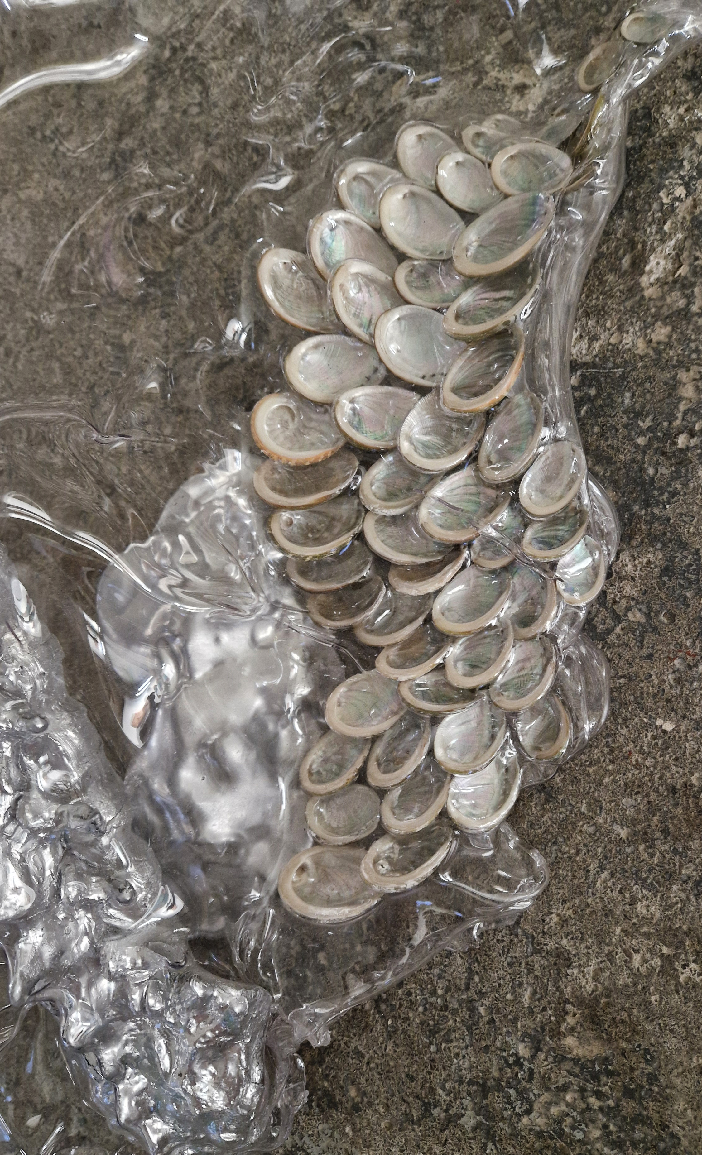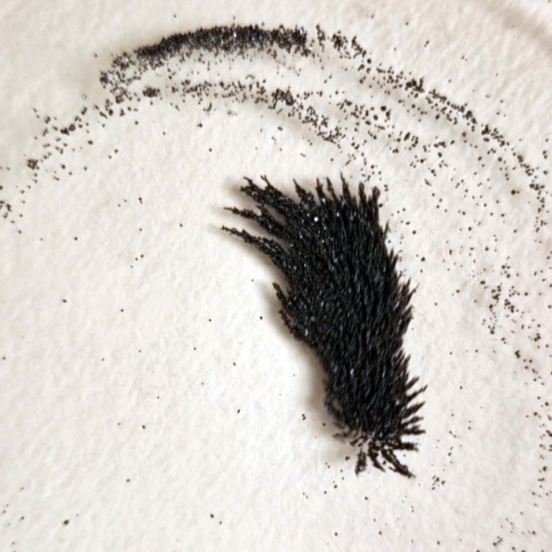 Through these actual and metaphoric lenses the relationship between the organic and non-organic is explored. Imagery includes allusions to scientific research into the dramatic overwhelming of innate magnetite in human brain cells by nanoscale pollutant particles of magnetite released into the air by traffic; the unique qualities of the chiton, a mollusc with hundreds of tiny eyes made from rock rather than biological material and teeth primed with magnetite and containing recently discovered mineral santabarbaraite; Saint Barbara, patron saint of miners and tunnellers, adopted when the use of explosives in mining escalated in the 1600’s and whose benedictions are still sought today with shrines installed at tunnel entrances at Crossrail and even at CERN, the epicentre of scientific rigour.