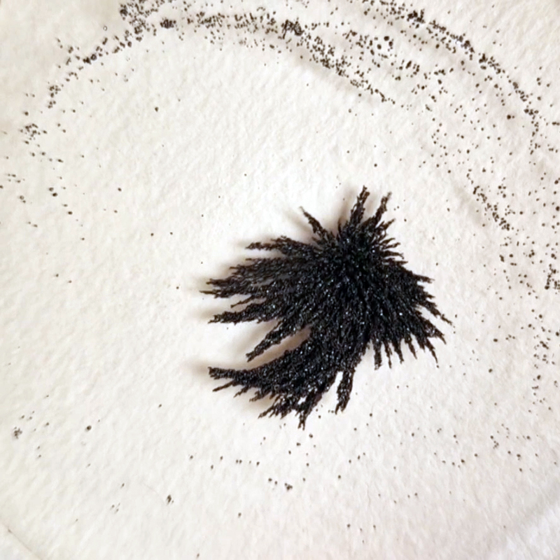 Also showing the video sculpture Belly of a Rock – describing an imagined place of chemical conversations at the intersection of the animate and inanimate. Under a crusted shell, surfaces slide and scrape along lines of fissure, distended innards ooze and rocks moan as they are distorted by untold pressure. The turbulent spiralling of the molten core births rock and lifeforms which are acted upon by the drag of an oscillating magnetic field.