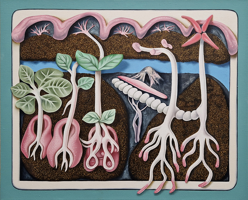 Mónica Alcázar-Duarte in Cultural Reforesting Exhibition at Orleans House Gallery. In this exhibition, the artists remind us that we not only have a relationship with nature but also that we are nature. We are human animals. Together, with our more-than-human neighbours, we are a growing, singing, howling forest.