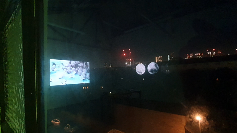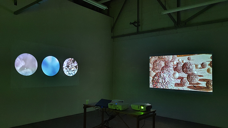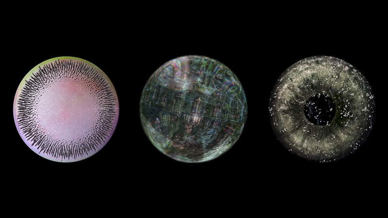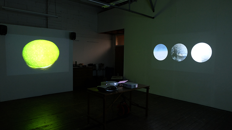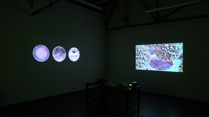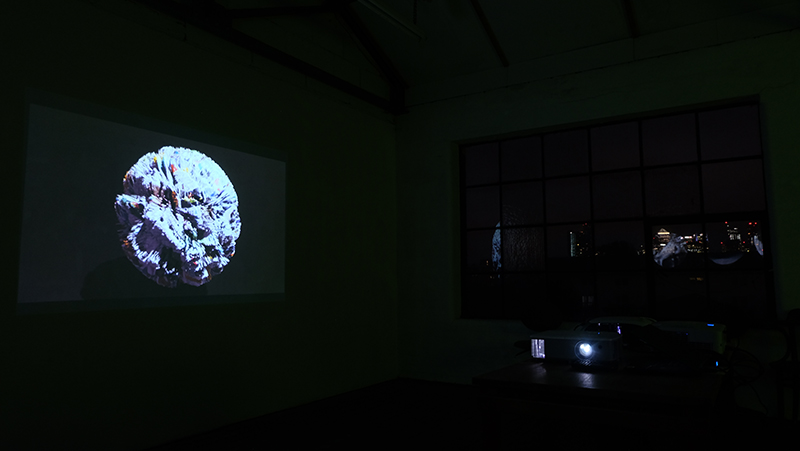 The Breath of Stars is a digital video work activated in real time by cosmic rays. These high energy particles arrive from outer space, interacting with life and technology on Earth. Coming from the heart of exploding stars or the depths of black holes, cosmic rays power across the universe with unimaginable energy. Some may come from phenomena yet to be discovered or even from other dimensions. A kaleidoscopic animation is projected every time a cosmic ray is recorded passing through the detectors. The animations are created from footage of cosmic ray trails filmed in my cloud chamber.