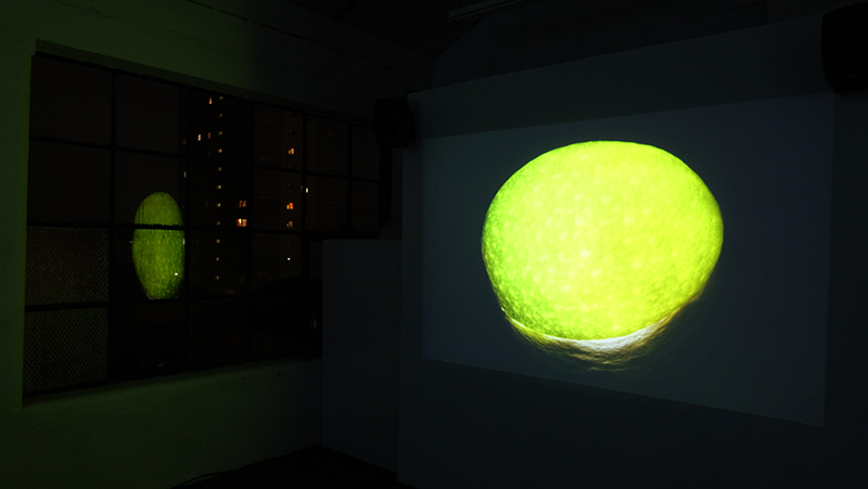 Cosmic ray detectors, mini computers, wooden box (20 x20 cm), video projection; live duration.