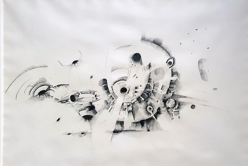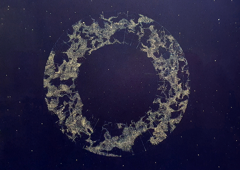 Unsettling to find it is already one year on since A Stone Sky duo exhibition with Julie F Hill opened at Thames-side Studios Gallery and this work was first shown.