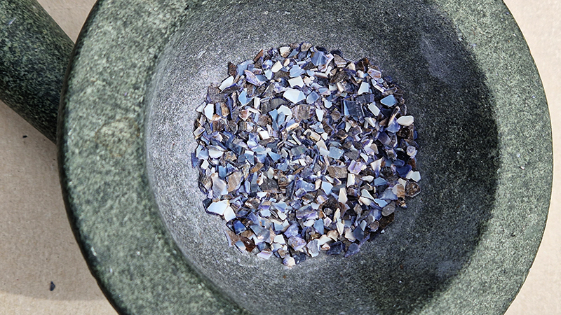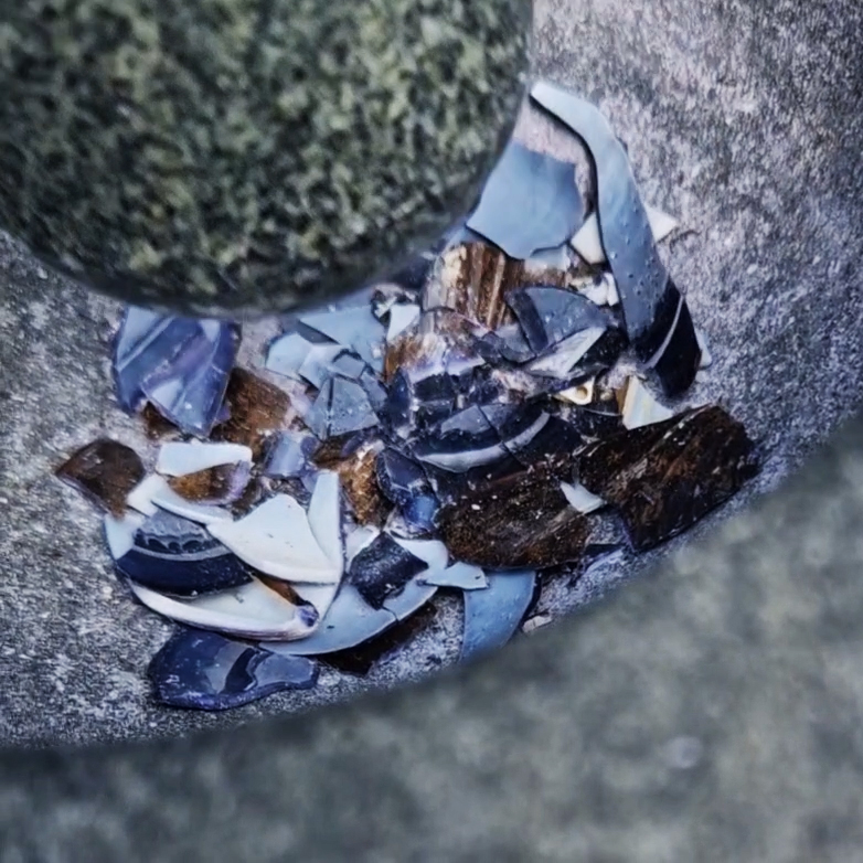 Sedimentary rock holds a geological history of the Earth’s magnetic field within its mineral components. The geomagnetic field, generated by the Earth’s molten core, varies through time; the magnetic poles migrate, go on excursions, or reverse polarity. During these periods of flux, the strength of the magnetic field changes, and this phenomenon is recorded in archaeological artefacts, volcanic rocks, and sediments. Limestone, a sedimentary rock, is often formed from crushed seashells, compressed over aeons. Crushed oyster shells were added to the obelisk base cast in Snowcrete.