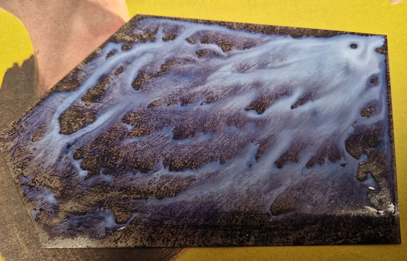 A year on and the pyramidion that sits on top of The Azimuth Obelisk (of sedimentary knowledge) is evolving. The patination, which involved a variety of chemicals being applied to the copper in layers, is an ongoing process.