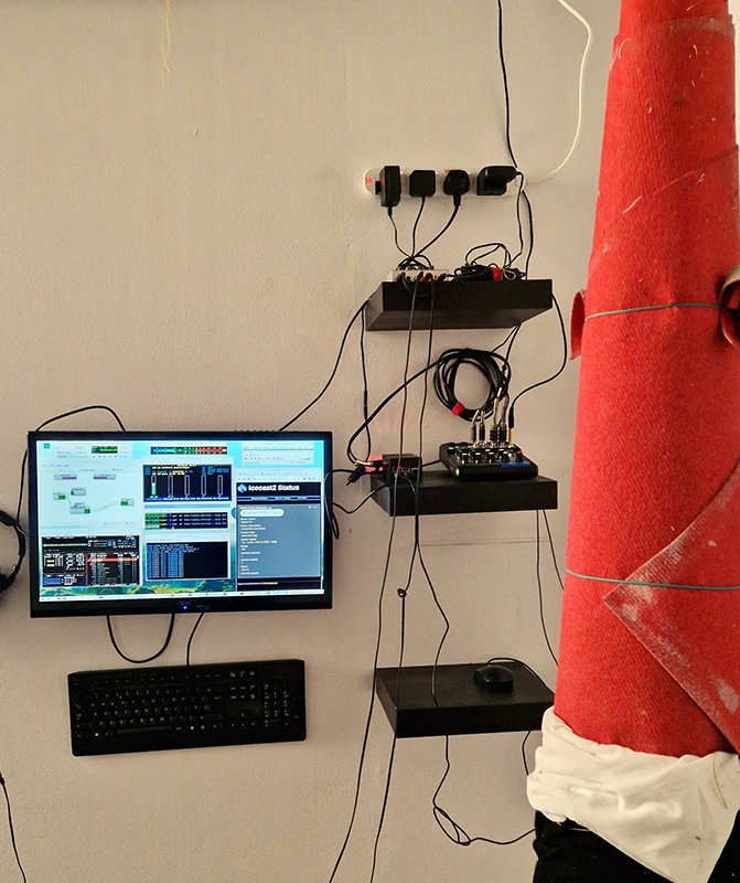 Cosmic ray detectors, mini computers, wooden box (20 x20 cm), video projection; live duration.
