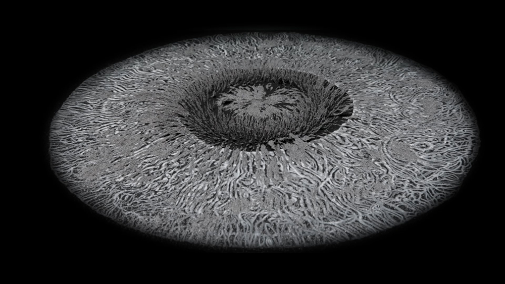 The Breath of Stars is a digital video work activated in real time by cosmic rays. These high energy particles arrive from outer space, interacting with life and technology on Earth. Coming from the heart of exploding stars or the depths of black holes, cosmic rays power across the universe with unimaginable energy. Some may come from phenomena yet to be discovered or even from other dimensions. A kaleidoscopic animation is projected every time a cosmic ray is recorded passing through the detectors. The animations are created from footage of cosmic ray trails filmed in my cloud chamber.