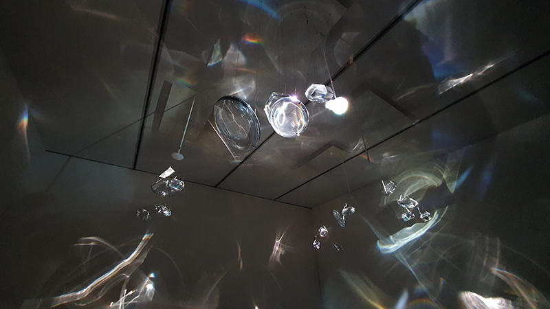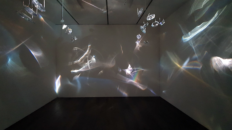 Excellent Monira Al Qadiri exhibition Deep Fate at the Museum of Contemporary Art Kiasma, Helsinki. Addressing the dichotomy of enjoying contemporary life made possible by oil during the accelerating climate crisis. Deep Fate, refers to the origins of oil deep in the earth and also to the way that dependence on oil and breaking that dependence are a matter of life and death for humankind. Al Qadiri grew up next door to oil refineries in Kuwait and experienced the Gulf War as a child. This personal experience is drawn upon in the haunting video Crude Eye which attempts to reconcile childhood memories of the oil refinery as a romantic glowing metropolis with its true nature as a site of environmental destruction. The demise of the local pearl-diving industry, a source of income superseded by the oil boom, is referenced by sculptures echoing the molecular structures of the chemicals used in oil drilling with iridescent rainbow colours that are reminiscent of oil and the shimmering surface of pearls.