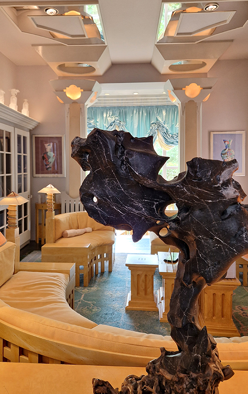 Cristina Iglesias The Shore at Hauser & Wirth features large-scale bronze works from the artist’s Littoral (Lunar Meteorite) series, part of her ongoing exploration of geological themes. The word ‘littoral’ refers to something relating to or situated along a coast or shore, or the region where the land meets the water. The weightiness of the objects is impressive ( I can’t imagine how they were brought into the gallery even with the technology available today – after coming here from the talk on stone henge and the incredible feat of bringing the standing stones across rough terrain for many kilometres and up a slope 5000 years ago seems even more impossible – yet there they are). The sound of water bubbling within each piece draws you to peer within and stay with the piece perhaps longer. The audience is invited to touch the sculptures. The bronze is polished and does need to be used and worn away in a more effective organic and dirty process. They are very clean.