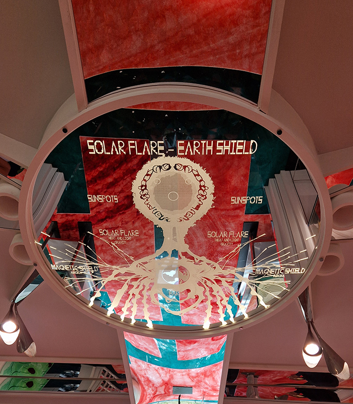 A wonderful evening with artist in residence Melanie King at Passengers connecting the celestial with the architecture of the grade II listed Brunswick Centre in Bloomsbury, London. Melanie used the residency opportunity to explore the duotone cyanotype process using multiple layers of cyanotype to mimic astronomical imaging construction and even used cyanotypes to create an of the Moon. The beautiful results were presented at an evening event with the additional treat of live telescope viewing of the Moon and Saturn from the second floor terrace of the Brunswick centre under the engaging guidance of astronomer and science communicator Paul Hill.
