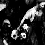 Elizabeth Murton’s scroll flows out across the floor in symbiosis with the marks upon it like a cascade of data presenting itself as a record of the inks journey.